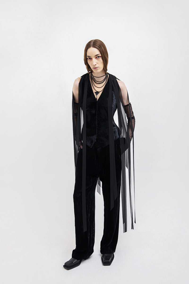 vest with chiffon ribbons in black
