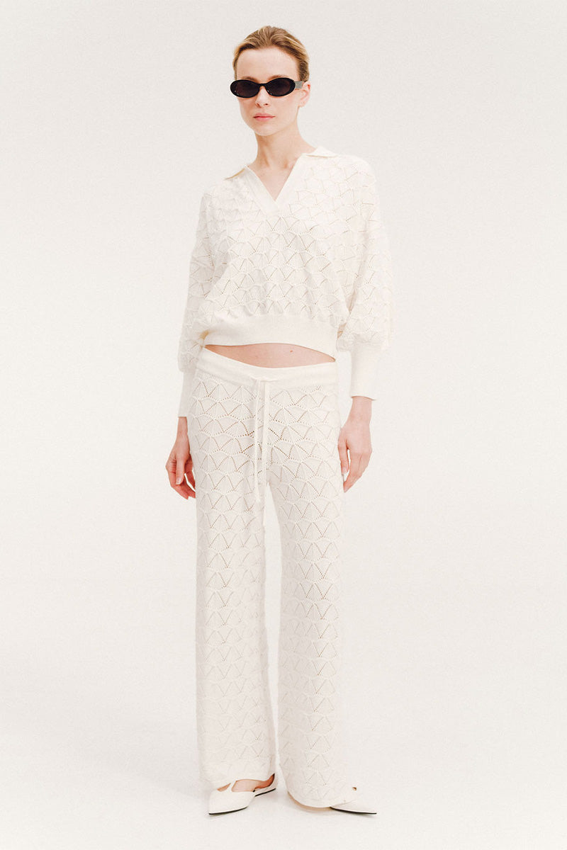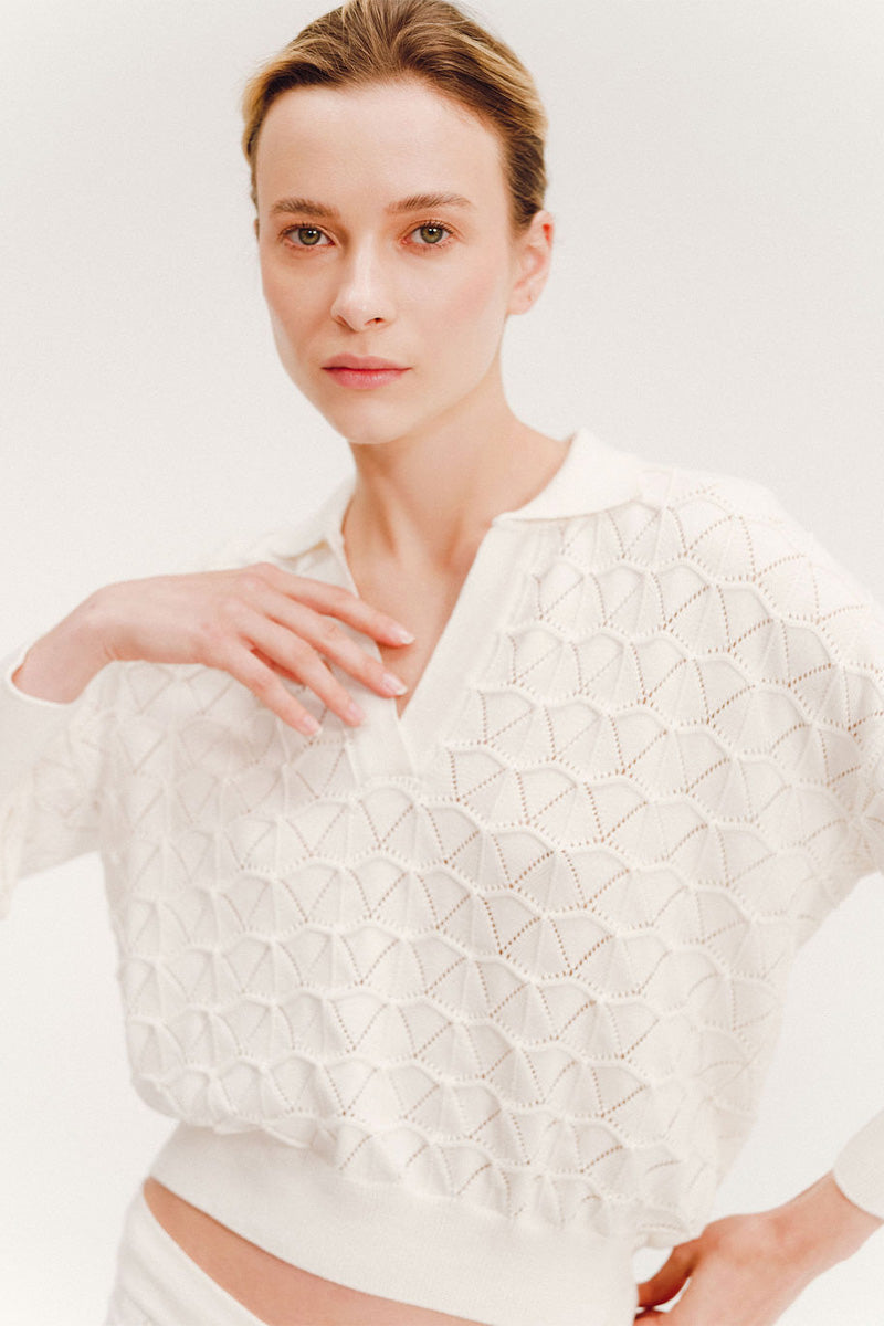 - Top with V- neckline, dropped shoulders, and ribbed trims
