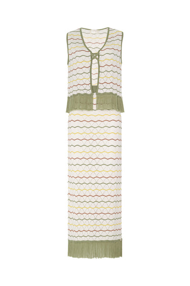 - Two- piece set: sleeveless tie- front top and high- rise skirt