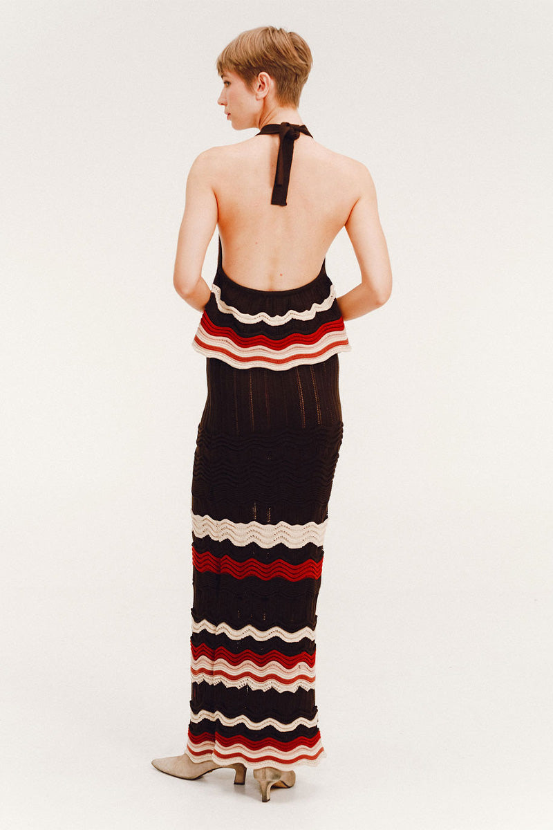 - Two- piece set: halter top and long skirt