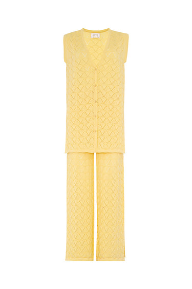 - Two- piece set: sleeveless V- neck top and wide- leg pants