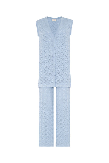 - Two- piece set: sleeveless V- neck top and wide- leg pants