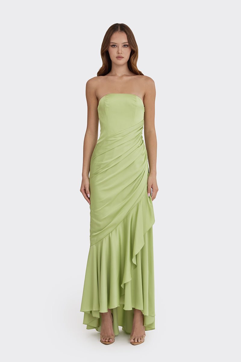- Strapless dress with delicate ruching and gathering details.
