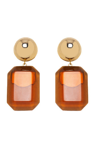 The Norah Earring in Gold combines bold style with elegance, featuring an acrylic bottom and 24k gold-plated brass for a sophisticated, contemporary look.