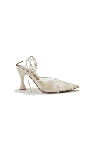 sienna white embroidered mesh heels