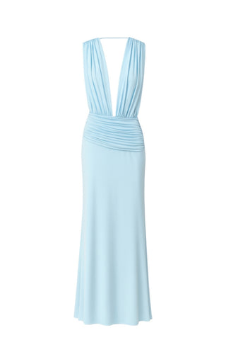 -Long dress crafted from baby blue stretch jersey with a soft, fluid drape