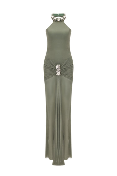 lurex tulle maxi dress in green