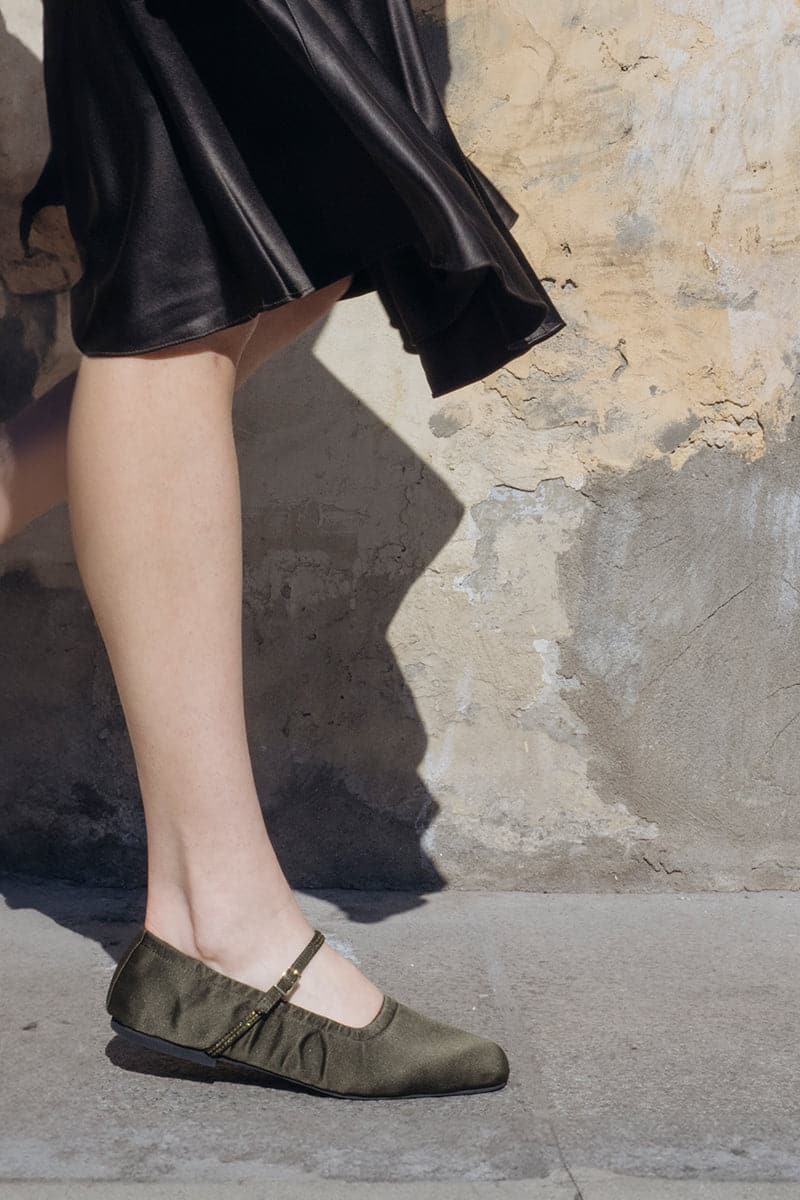 Inspired by our signature square-toe ballerina, Aurora adds a touch of shimmer to a timeless silhouette. This crystal-embellished Mary Jane ballerina is secured with an adjustable buckle-fastening vamp strap and finished with elastic support at the heel. Our signature cushioned insole ensures a more comfortable fit and a unique silhouette. Offered in our vegan and sustainable Satin and Nappa-Effect. Artisanally made in Veneto, Italy.