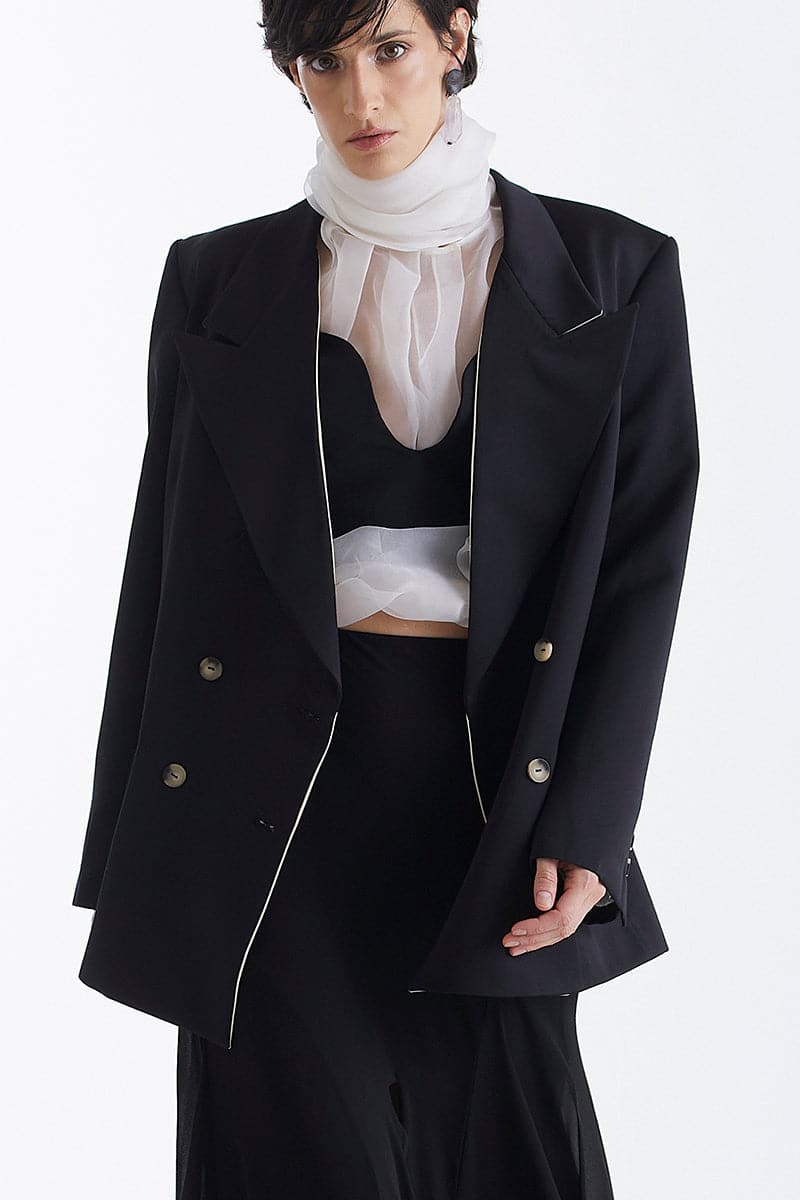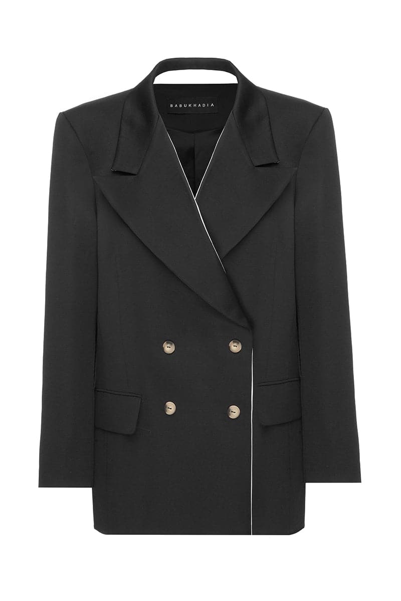 black trimmed lapel blazer