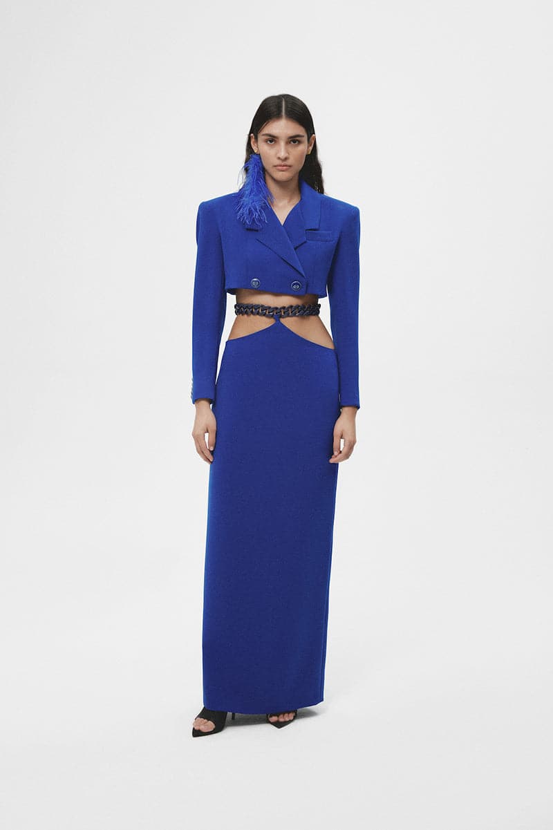 blue crossed crop blazer