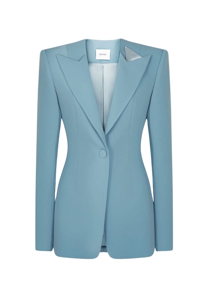 Elevate your style with this luxurious single-breasted suit jacket. The fitted silhouette and 2-piece sleeves exude sophistication, while the 4 buttoned cuffs and wide shawl lapel showcase high-end details. Complete with pointed tails, a satin triangle design on the left side, and practical features like 2 darts and 2 flap pockets at the front and a center back seam at the back.