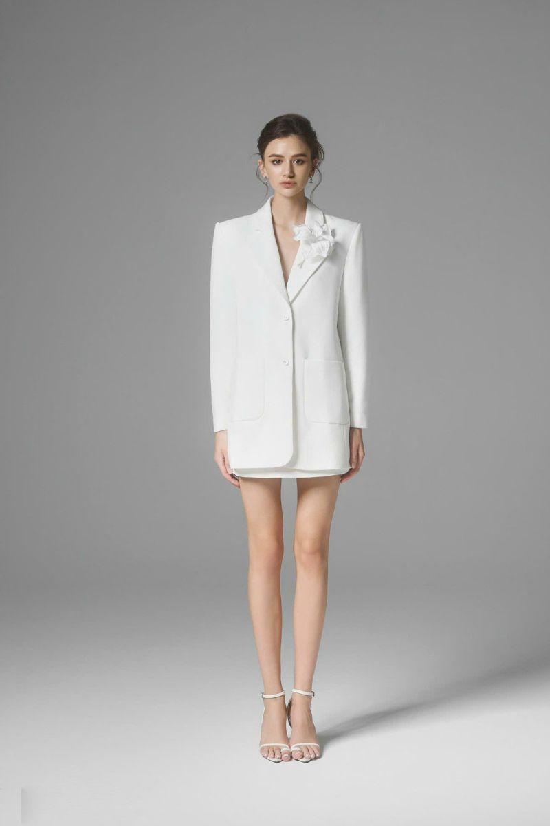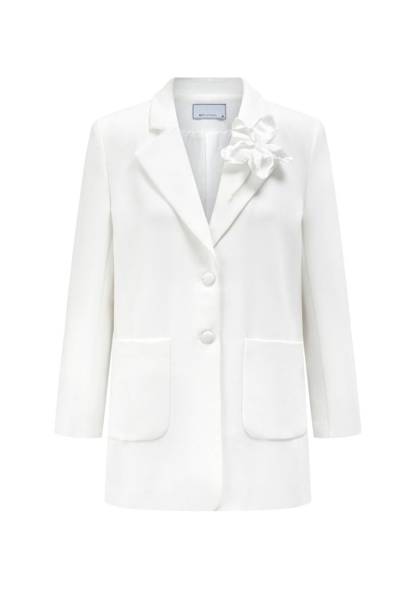 It's tailored has peak lapels and generous patch pockets on the hips. Lily brooch from silk - blend that'll instantly uplift your mood and outfit. Pairs beautifully with a matching skirt for a complete, sophisticated outfit.