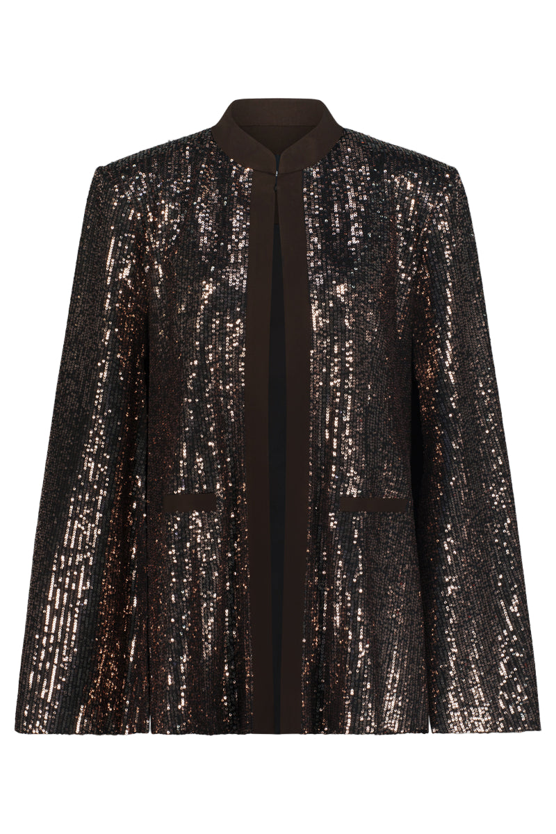 shimmering sequin cape blazer in brown