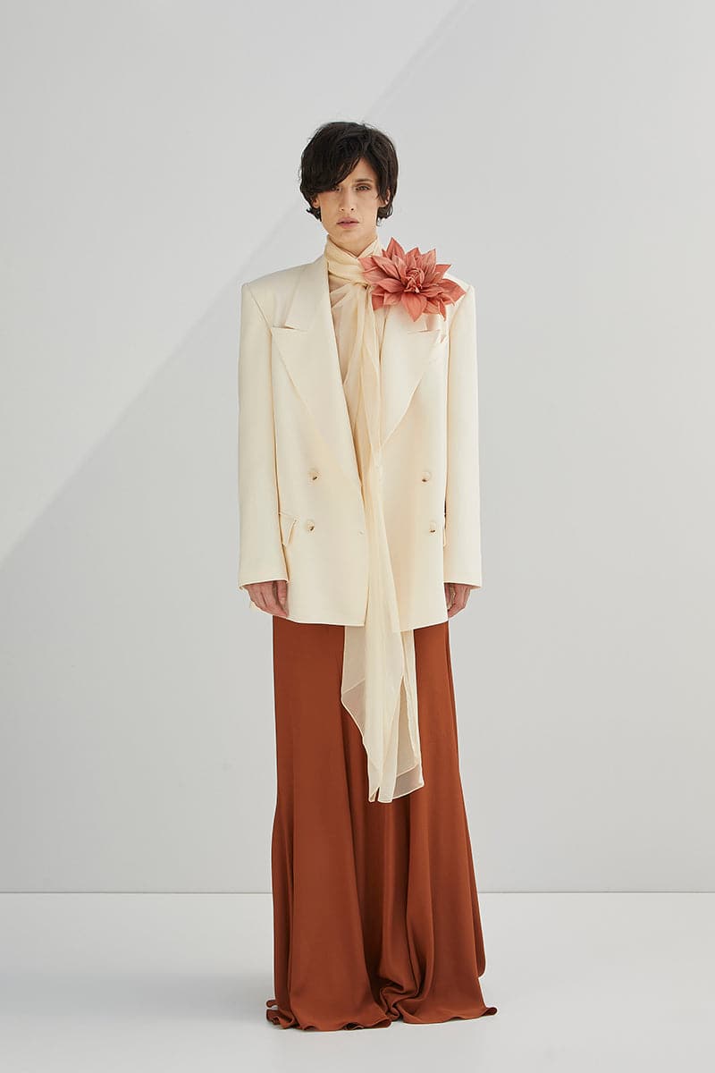 Established in 2012 by Nino Babukhadia, this Georgian brand is known for directional outerwear, meticulous detailing and a strong design signature. By blending post-Soviet references with contemporary concepts, it creates feminine silhouettes with a subtle masculine edge. We love its refined tension, modern attitude and commitment to quality.