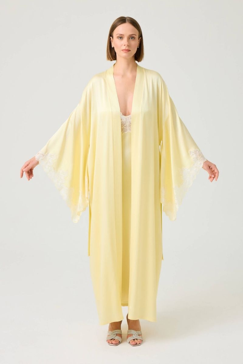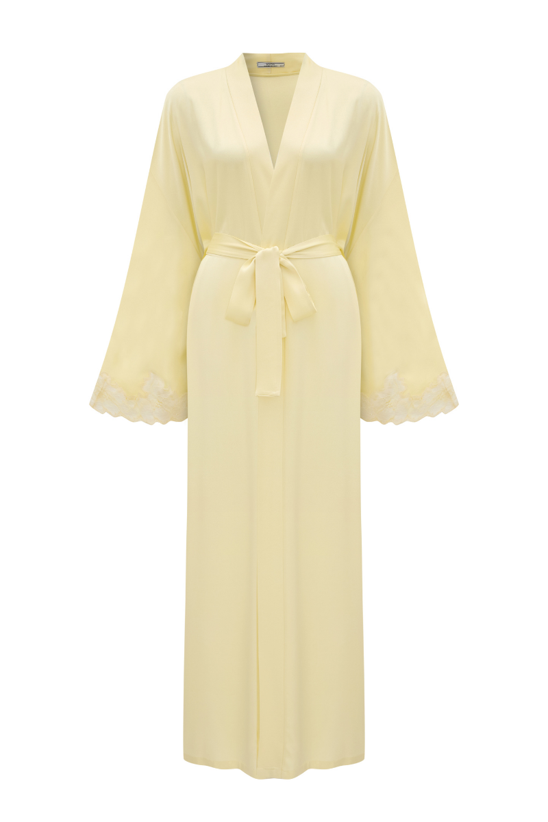 heidi long rayon robe with butter yellow lace