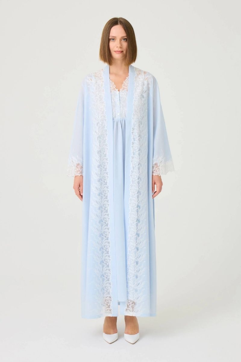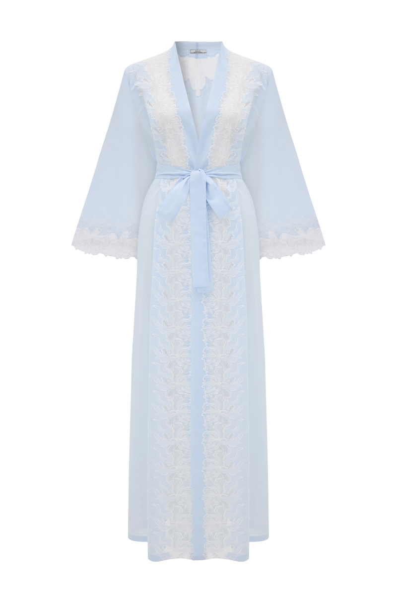The Liliane Robe blends relaxed femininity with everyday ease. Crafted from lightweight cotton voile, this long-sleeve robe is detailed with delicate trims and designed for graceful layering. A breathable and refined piece for calm mornings or special getting-ready moments.