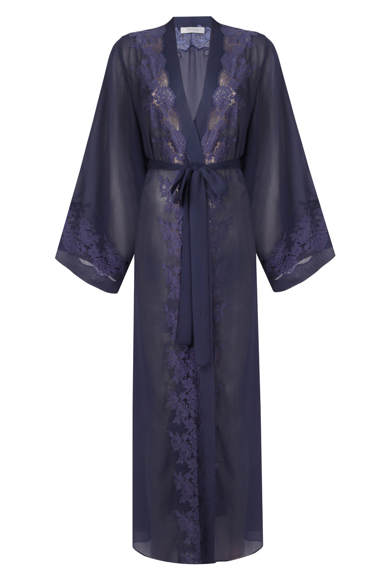 sapphire long silky indigo robe