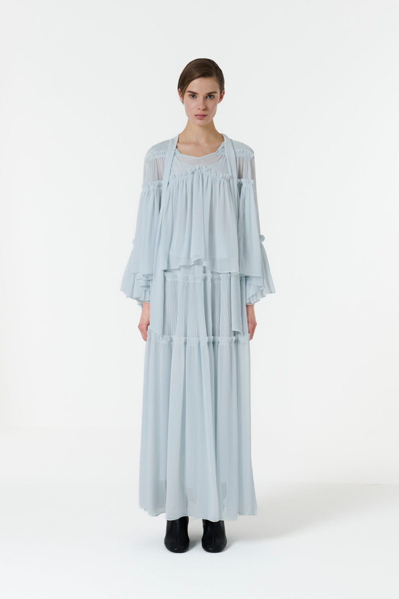Soft movement and thoughtful details come together in this Frill Detailed Top. The raw seams and delicate frills bring texture, while the French sleeves lend a refined finish. Its fluid silhouette layers effortlessly through cooler days. A versatile piece that works from day to night with quiet ease.
