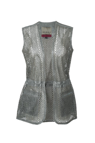 - Sleeveless leather laser-cut vest