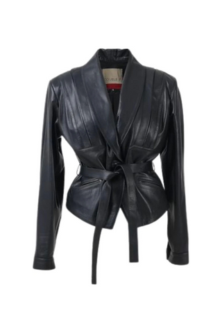 - Leather Jacket features adjustable waist belt