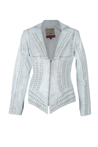 kayla leather jacket in washed white
