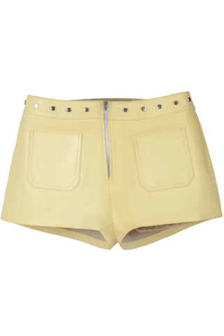 The Sterling brings an effortlessly cool edge to classic leather shorts. Designed with a bold visible front zipper and statement studs along the waistline, these shorts exude attitude and modern sophistication. Two front pockets add both function and style, making them a go-to piece for a striking, edgy look. Pair them with a sleek top and boots for a bold statement or dress them down with a relaxed tee for a casual-chic vibe.