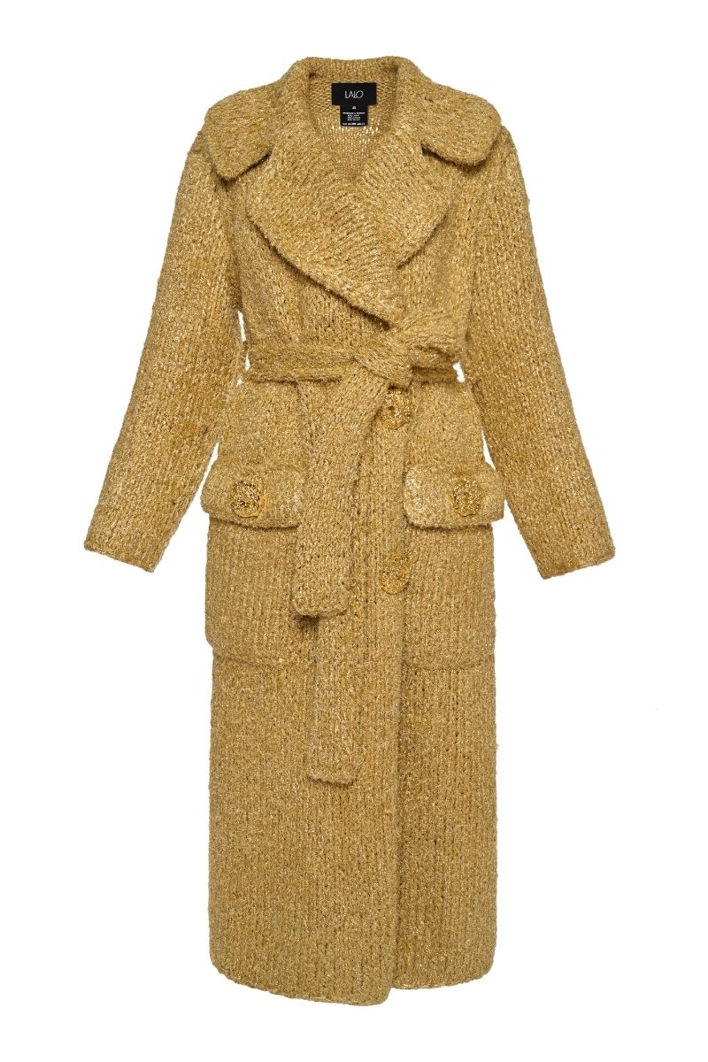oversized coat with belt in gold