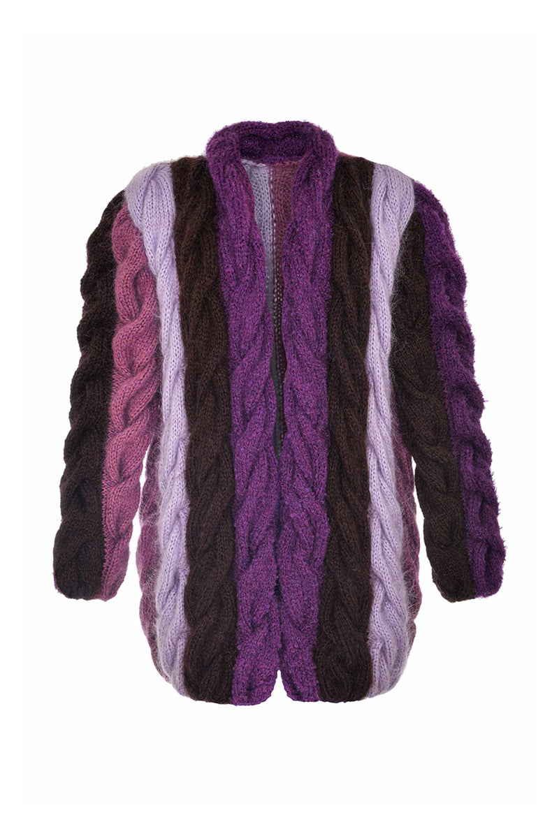 purple and brown mohair cardigan