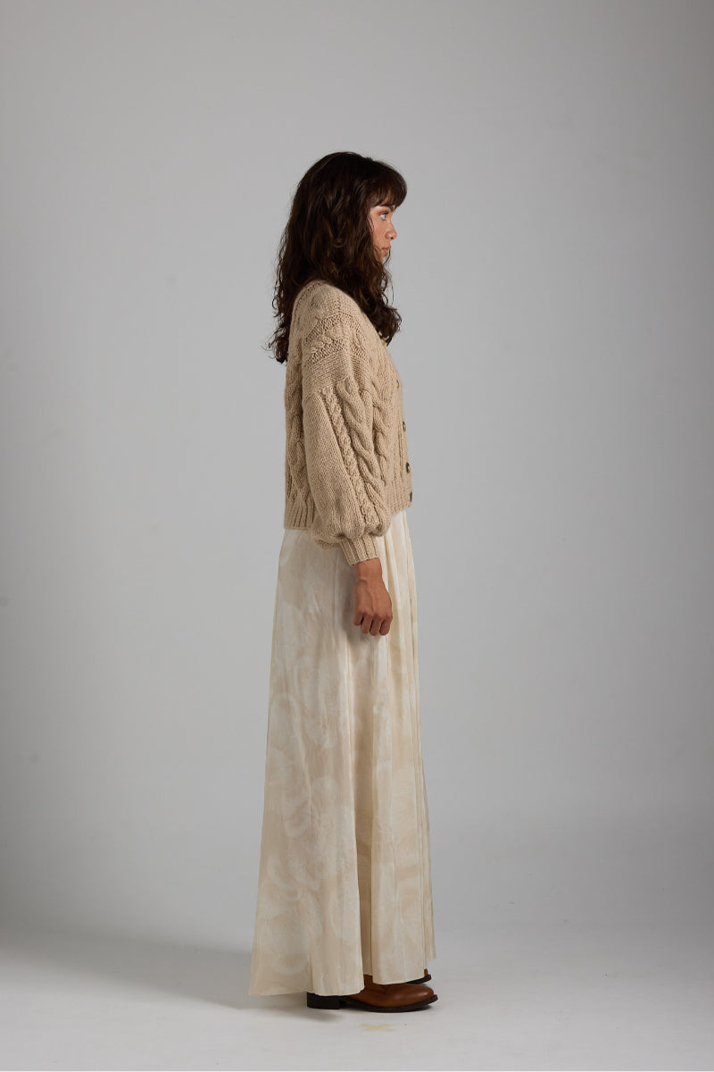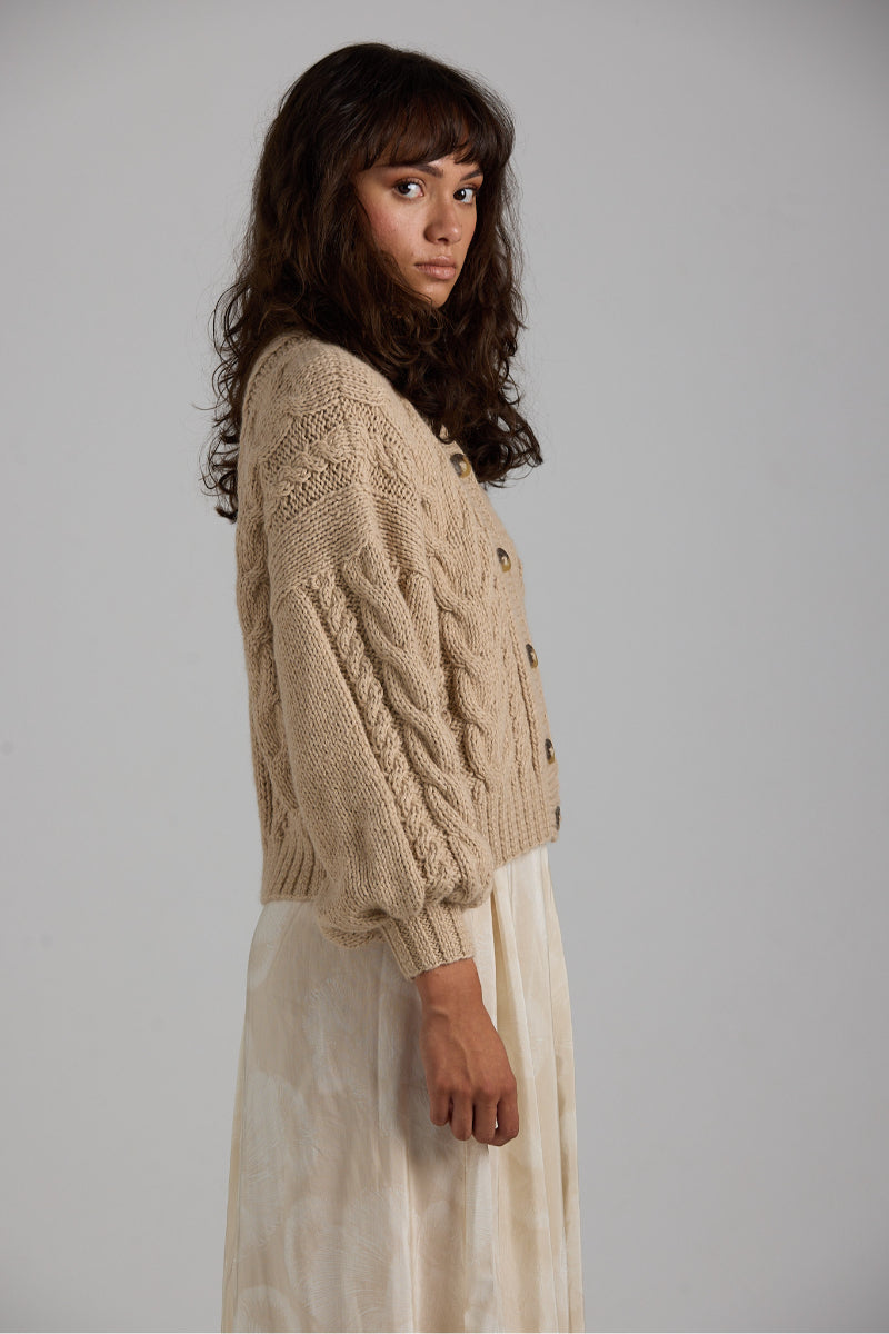 Timeless. Effortless. Pure. Lulu is a timelessly elegant, cable stitch mid rise cardigan—crafted for comfort and elevated in design. Meticulously hand-knitted from the finest 100% Baby Alpaca yarn, it features a relaxed, oversized silhouette with classic front button detailing. Every stitch is a tribute to slow, intentional craftsmanship.