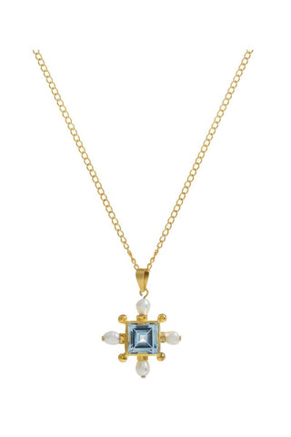 - Pendant: 10 x 10mm Blue Topaz Gemstone, 5mm Diameter Pearls, 2.5 x 2.5mm Pendant