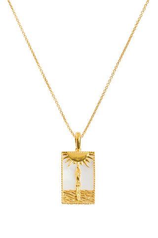 rectangle woman and sun necklace in gold vermeil