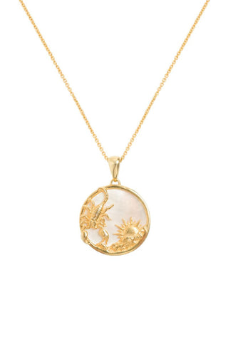 Intense and mysterious Scorpio, this 18ct gold-plated Sterling Silver and Mother of Pearl Zodiac necklace embodies your powerful and passionate nature. Known for your depth and magnetic presence, you approach life with an intensity that captivates those around you. The mesmerizing sheen of Mother of Pearl symbolizes your enigmatic and transformative qualities, while the striking gold plating reflects your determination and strength. This Scorpio star sign necklace is a tribute to your fierce and alluring personality, making it a perfect accessory for those who appreciate your complexity or for anyone who seeks a piece that exudes mystery and allure.