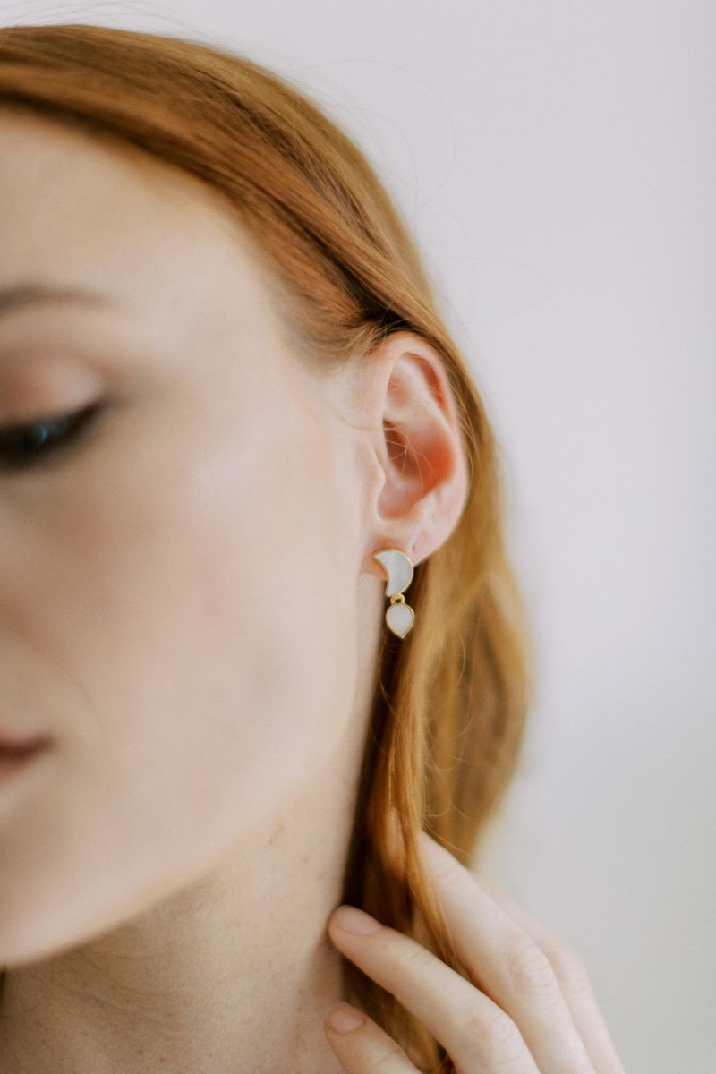 Treat yourself or someone special to this radiant pair, and carry the beauty of the moon with you wherever you go.