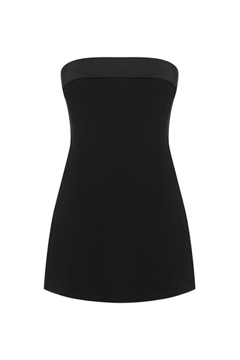 Crafted with a luxe black crepe fabric, this mini dress brings effortless elegance with its collar adorned with sleek satin detailing. Its timeless hue of black ensures it will never go out of style.