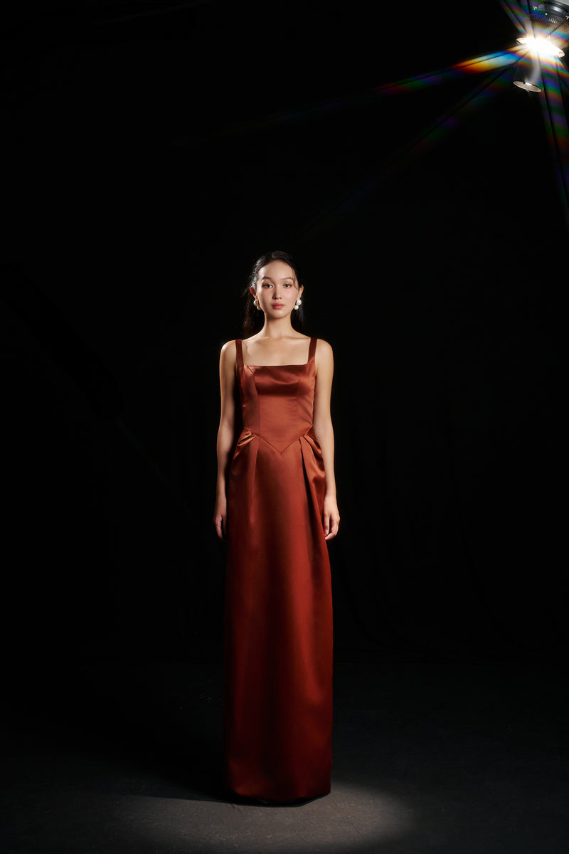 amelia strap dress in champagne orange