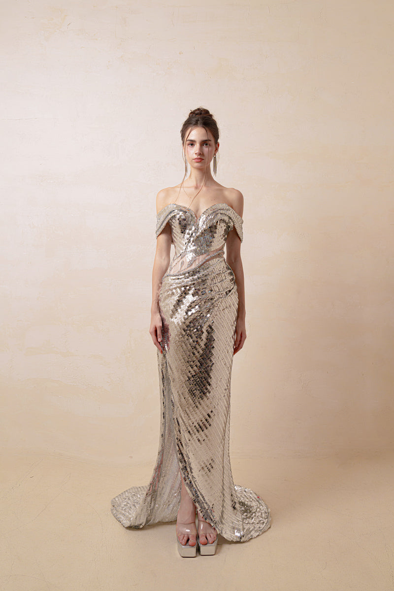 couture dress in silver
