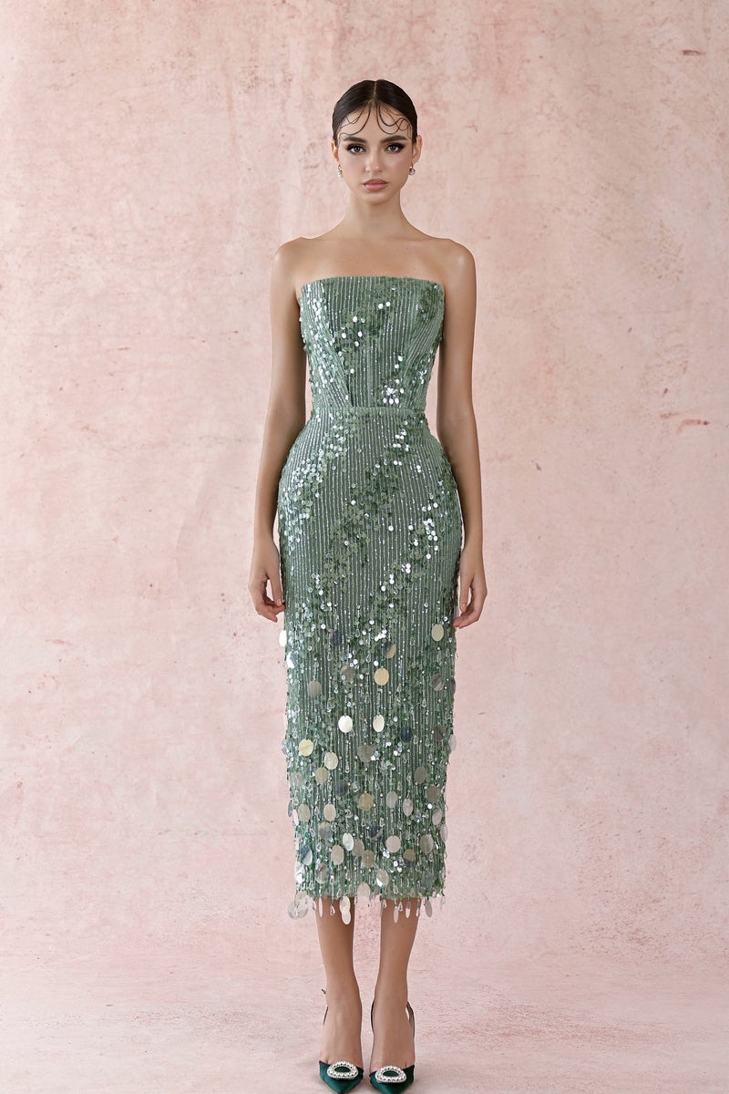 green sequin strapless dress