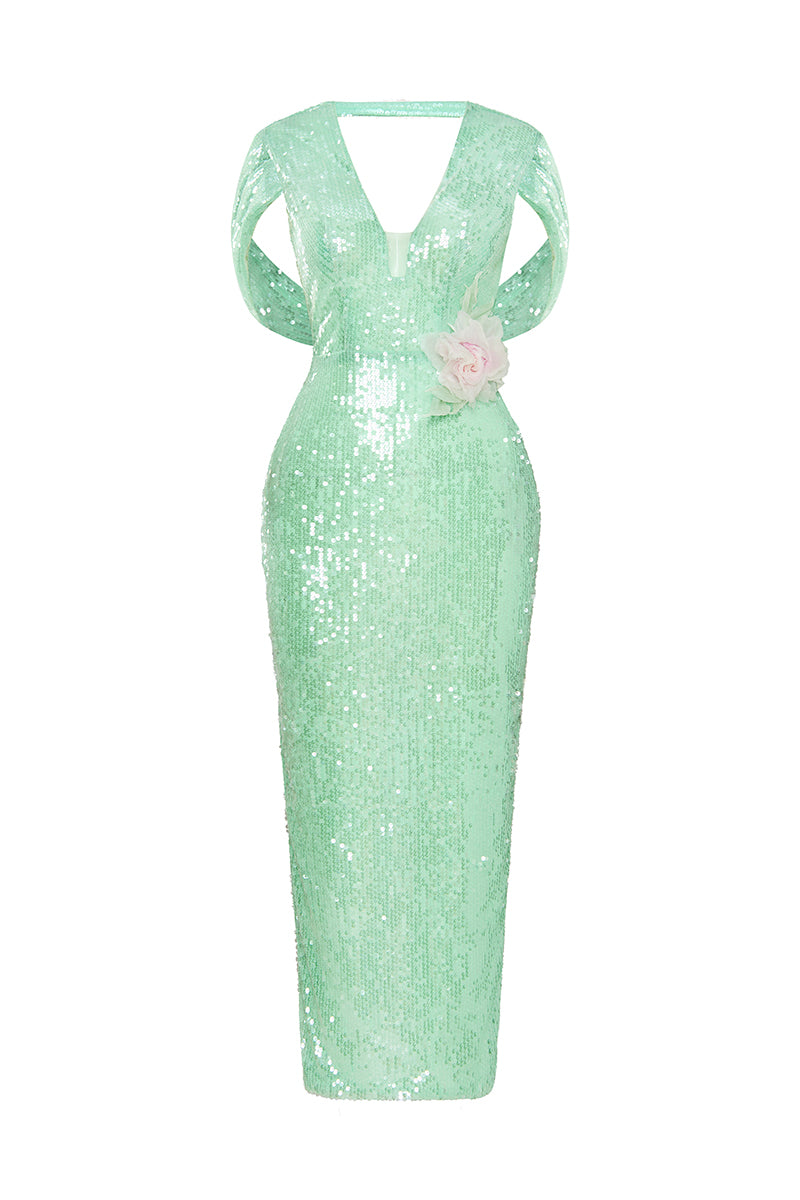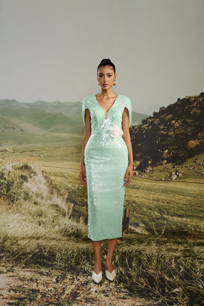 - Fully hand-applied sequin embellishment for radiant sparkle