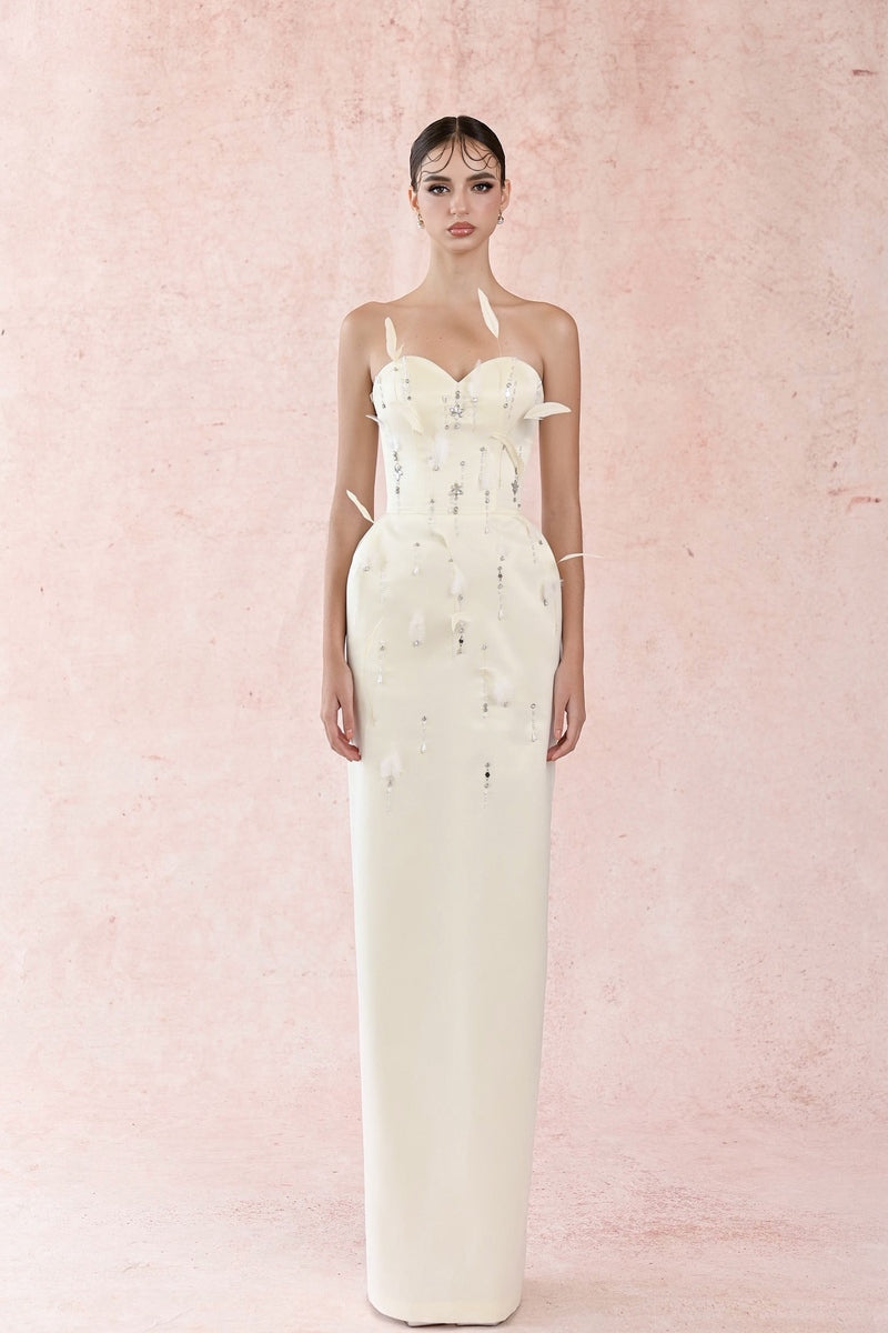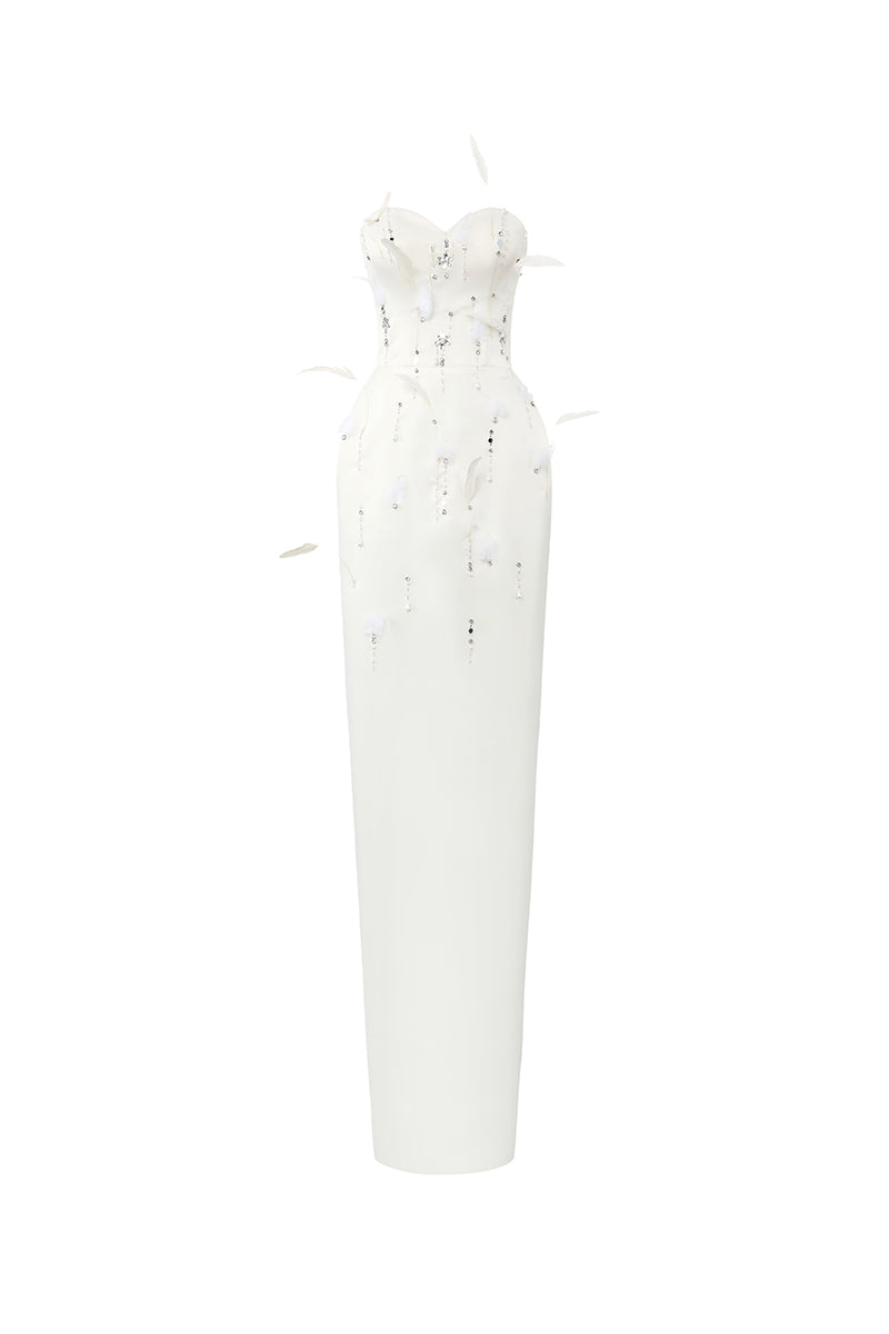white feather charming gown