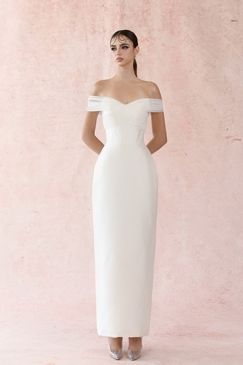 white taffeta pleated dress