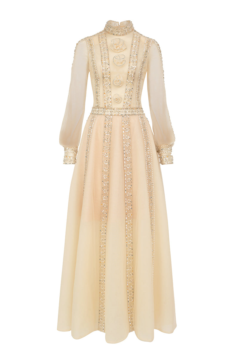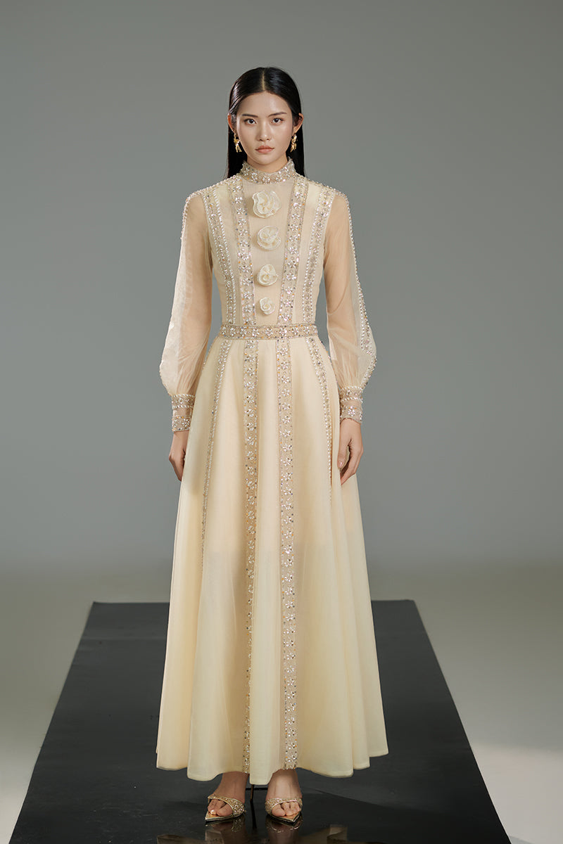 With its sophisticated design and attention to detail, this dress is a stunning choice for those who seek a look that's graceful