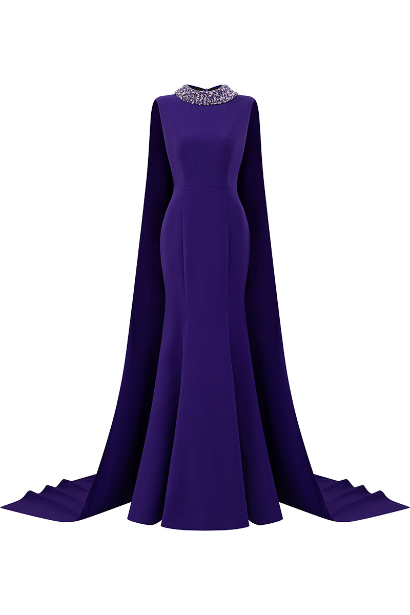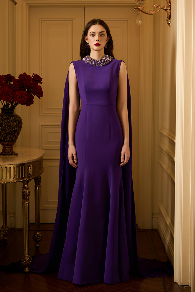 tiana crepe cape gown
