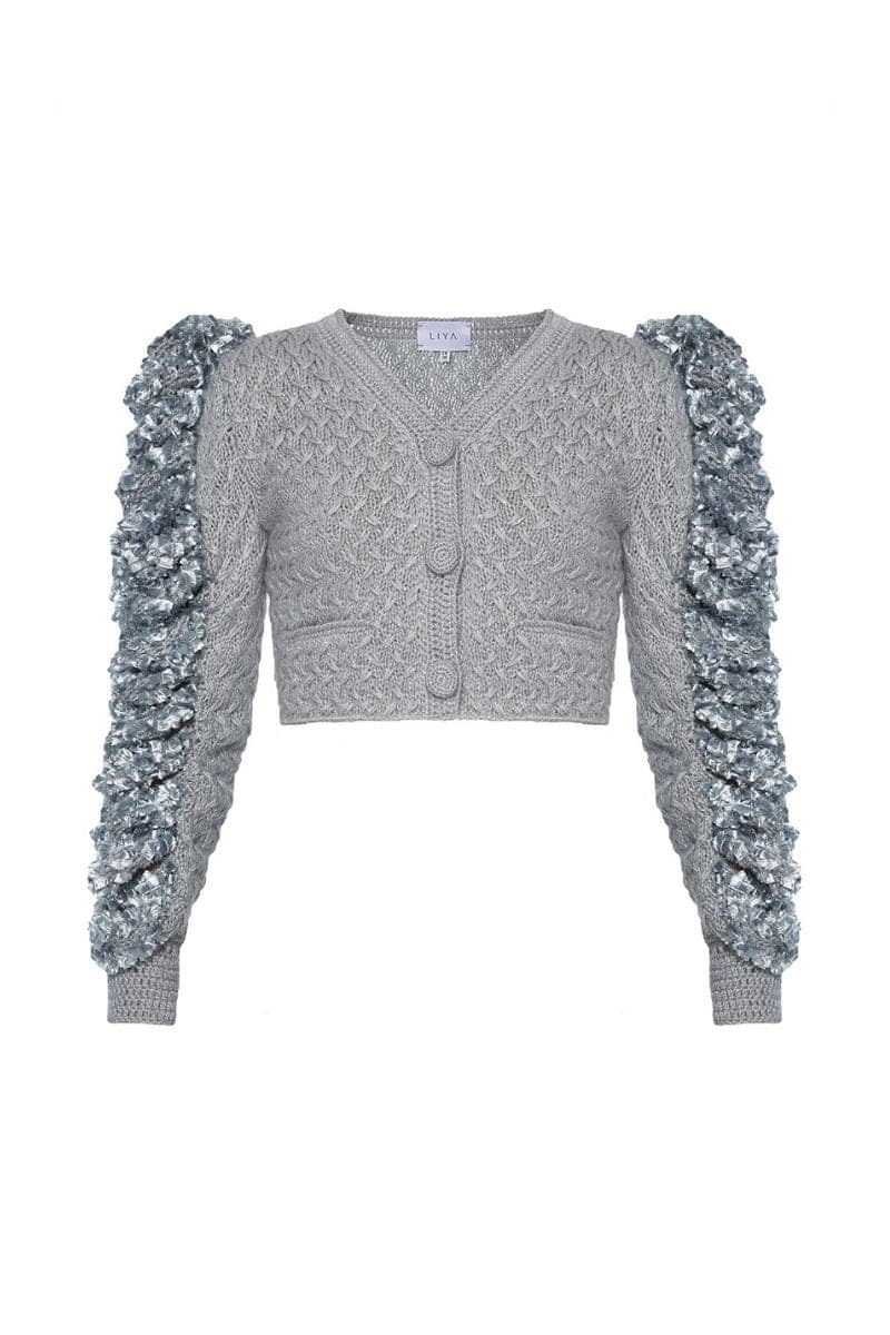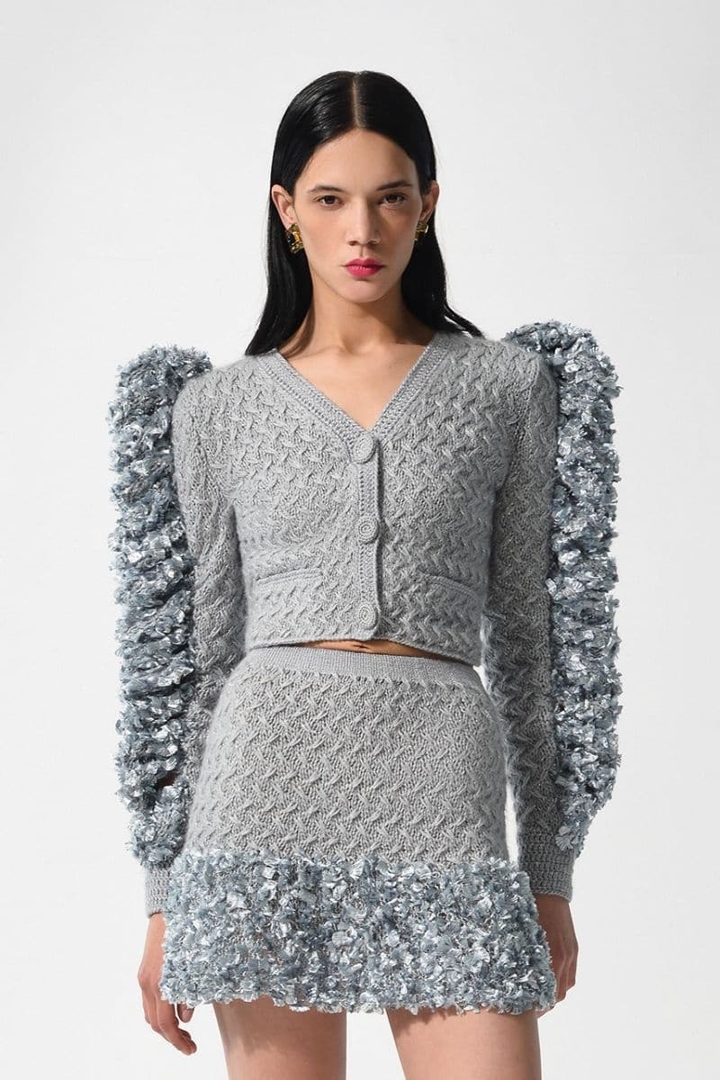 Aqua gray with fluffy knitted details