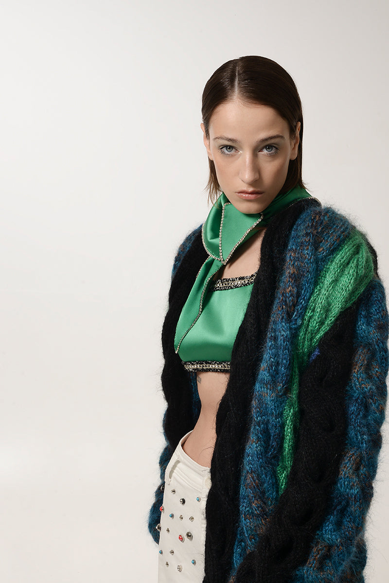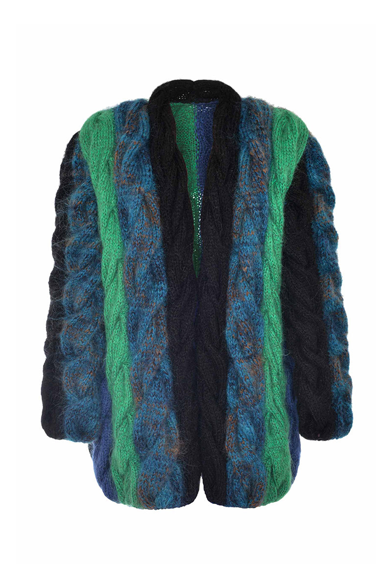 green and blue mohair cardigan