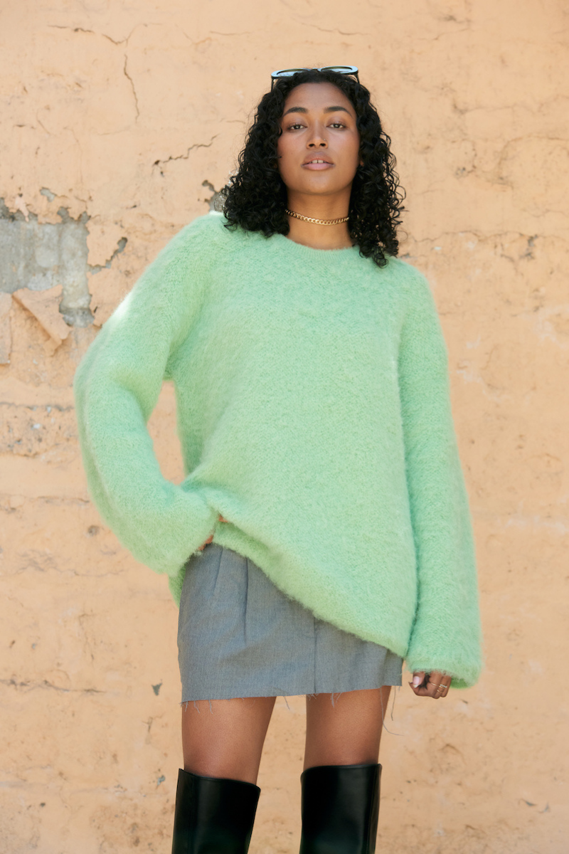 This Suri knitted crewneck is perfect for those looking for an oversized, comfortable fit with its fluffy exterior. All the materials used are carefully sourced to ensure quality and durability. This jumper is perfect for cooler weather.