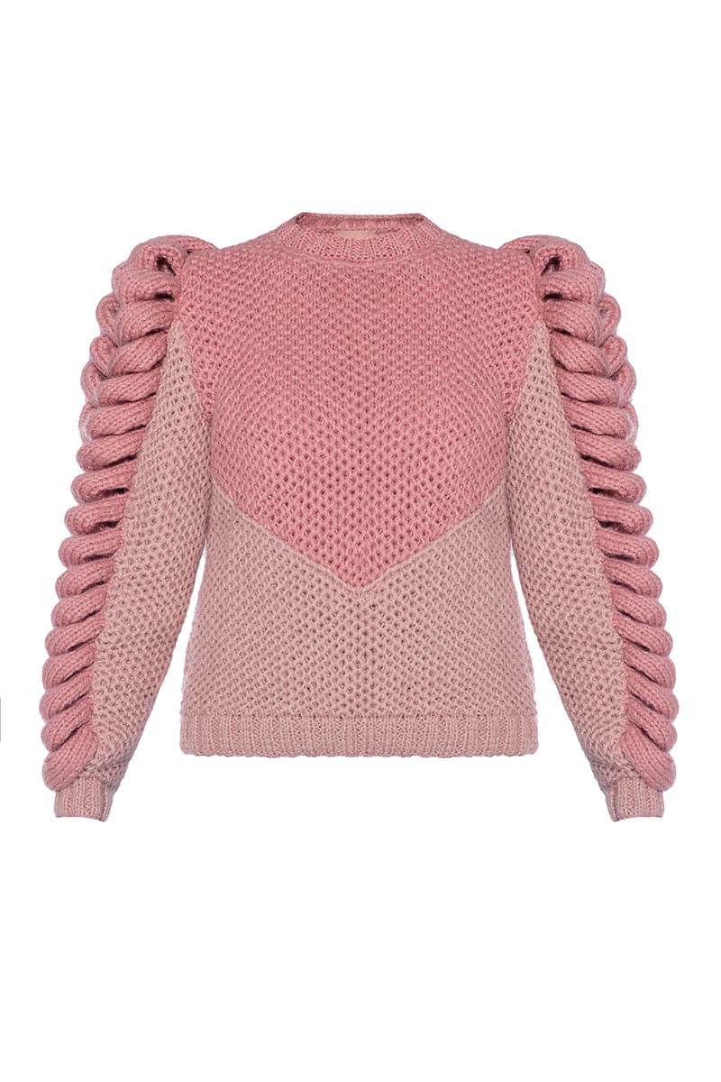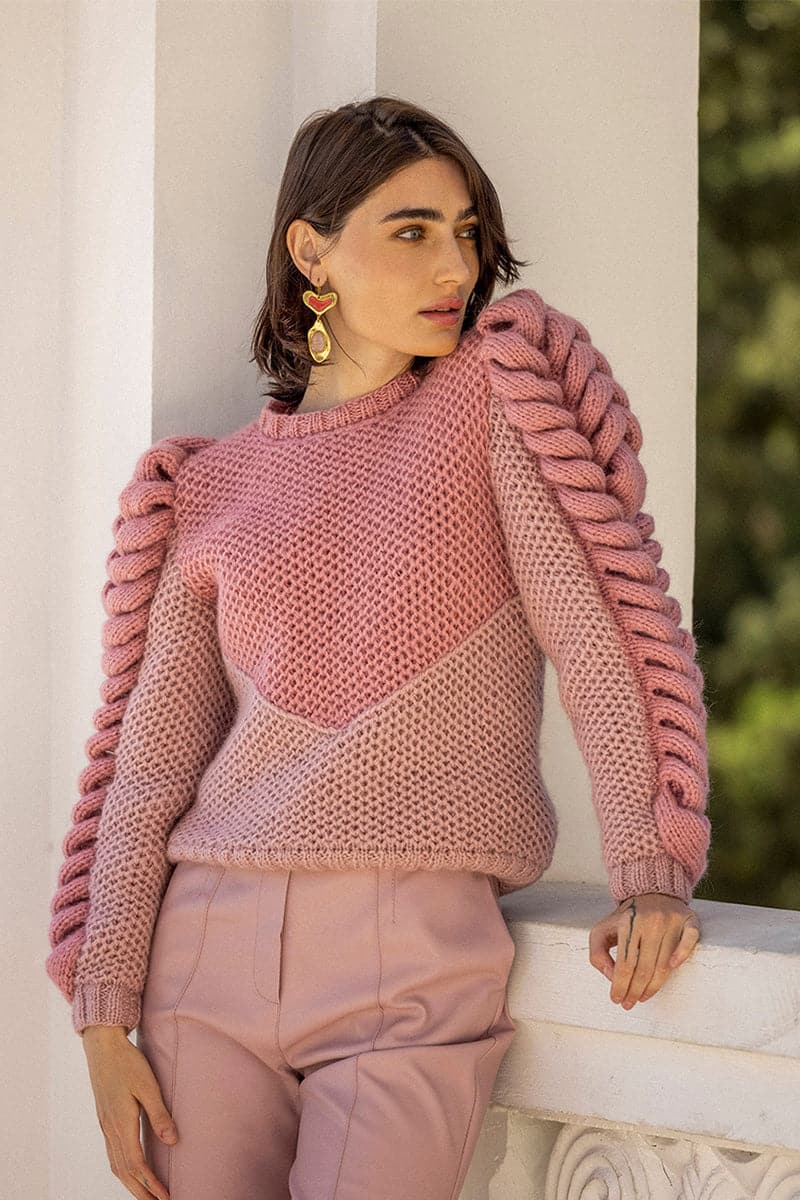 Hand-knitted sweater with LIYA statement sleeves is a cozy and stylish choice for everyday wear.