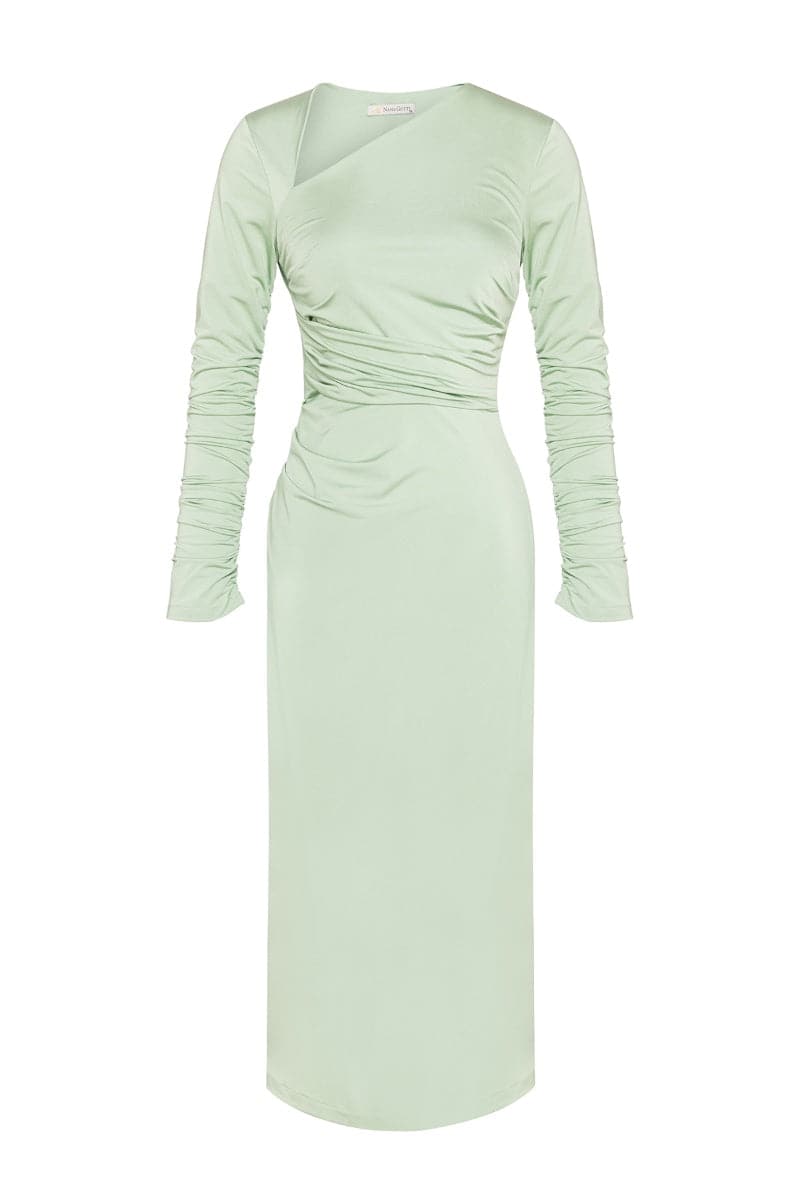 green ruched asymmetric jersey midi dress
