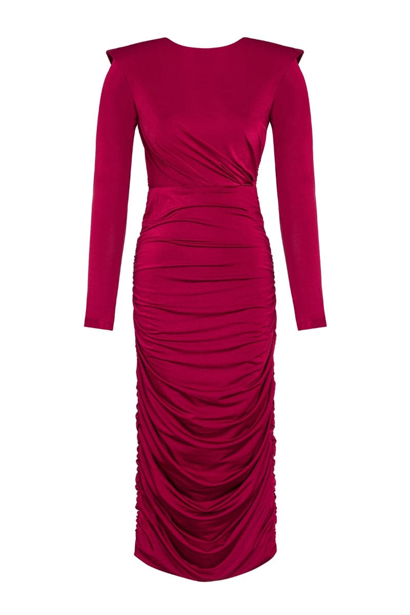 sahar red ruched stretch-jersey midi dress