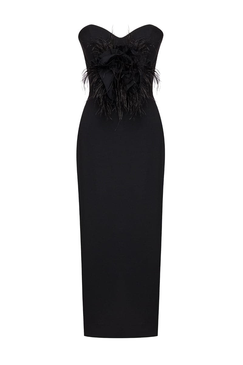 Composition: 100% Black Crepe, Ostrich Feathers