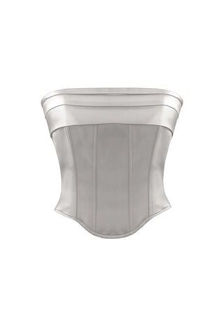 - Strapless corset top crafted from silver satin
